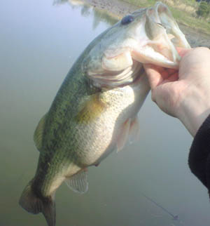 ですが、すでに4人もいる池にあとで着いても、まったりモードになる可能性大だろうし、このあと雨も降るような予報だったんで、一カ所だけ気になってた池に寄ってから合流することにしました。そしたらコイツが釣れました♪ これでもか!、と言わんばかりのプリスポーンバスです。