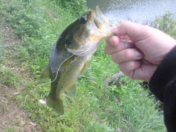 最初の池では3センチくらいのススメバチを見てびびってしまい、池で釣りをせずに移動。次の池に着いてみるとワッキーさんとジュニアがいて話をしたところ、朝は別の池で2本釣れたそうです。午後からの釣果は厳しいとのことでしたので、原因はニゴリのせいだろうと思い、地形を読んで池をチョイスしてから移動しました。
