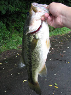 水はクリアでバスは丸見え!そこで最初はポッパーをキャスト。でも反応なし。そこでミノーに切り替えるも、また反応なし。う〜んレンジじゃないのか?と思い、ノーシンカーをキャストするとあっけなくバイト。どうやら表層を意識してるのは確かですが、昨日からの雨の影響でムシとかを補食してたのかもしれません。