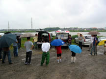 朝6時半、選手は思い思いのポイントへ向かいました。しかし30分を経過したころ、曇り空から雨に変わり、時折強く降り続いたため、選手の集中力は下がっていきました。屋根がある場所や車中で休憩しながら小雨に変わるのを待つ選手が目立ちました。ボートでのトーナメントではありえないこの光景はショアトーナメントならではです。何も悪天候の中で釣り続けることがすべてではないですからね。モチベーションを下げないためにも選手はレギュレーションを有効活用し、工夫して大会に挑んでいるんです。