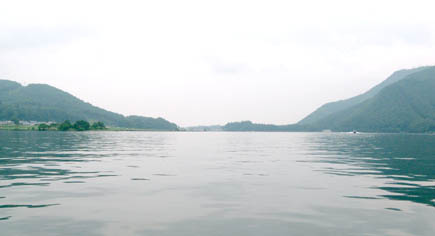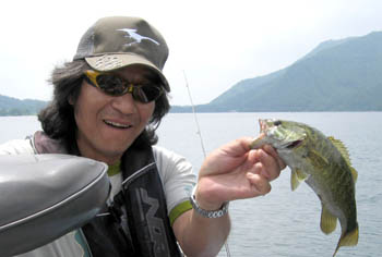 長野県木崎湖です。そう、スモールマウスのいる(ラージと混在)湖です!! ってことで今回は長野県でプロショップと営む“アメリカンスタイル(略してアメスタ)”でおなじみの寺島さんと行ってきました。寺島さんは木崎湖でガイド業もしていて、店はほおっておいて!?(…なわけはなくバイトさんにきちんとお願いしてます)ガイドのほうは人気抜群!平日も埋まりまくりのプロガイドさんでもあるのです(詳しくはパピルス&モダンボートへ)。