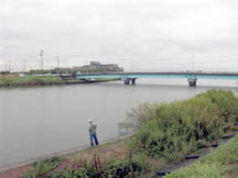 続いて8:00、馬場さんが朝鮮川にある水門付近のアシぎわでラバージグ3/8ozを使用し31cmをキャッチ。浅井さんがキャッチした場所よりもやや下流のポイントとなり、特に大きな変化はなさそうな場所でしたが、アシ際付近のボトム変化がバスのコンタクトポイントとなったと思われます。