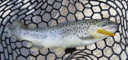 そこでリアクションに切り替えてシュガーミノーを使用すると一撃でキャッチ成功!! その後もコンスタントにキャッチし、ハンクルミノーやチャビー、ワンダー、マーチン、ナッツなどでも釣れました。トゥイッチが有効でしたので、時々移動してはスレを回避していきました。一応スプーンでも数匹キャッチしましたが、午前中のハード系の効き目は、スプーンのそれを忘れさせるほどでした。