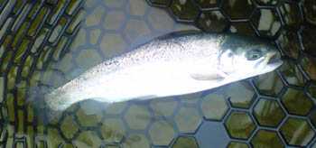 まずは(ビギナー)ポンドからはじめましたが、最初から爆釣です。表層付近でのバイト連発で、ワンヒットワンフィッシュの勢いで釣れます。お客さんも少なめでしたので、プレッシャーが低かったのかなあ、前に来た時とは全然違いましたね。