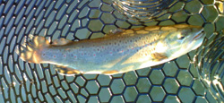 このあともクラピーでエキスパートポンドを釣り続けて、9時までに11本です。サイズは大半が35cmくらいですが、中には40UPも釣れました。釣り方はいたって簡単、少しロッドを立ててゆっくり棒引きです。ただし、最初はサーフェイス気味にリーリング、そして日が差すとともにロッドを下げて徐々にルアーのリーリングンジを深くしていきます。最終的にはロッドティップを水の中に突っ込んでレンジを深くするまでになります。この方法で11本です。今までエキスパートポンドはそれほど爆釣したことがなかったですし、周囲もそれほど釣れていませんでしたので(周囲が見えてなかった?(笑))、結構気分が良かったです。今回使用したのはクリアーとピンクです。昔よく使ったCBシリーズのようなアクションなので、バス釣りをしている人なら馴染みやすいルアーだと思いますよ。