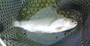 話は戻って、エキスパートポンドでは、50cmには届かなかったものの、45cmのレインボーが釣れました。ルアーポンドでも一時的にでも晴れ間が出るとハードルアーへの反応が顕著になるので、バイトが増加して楽しむことができました。