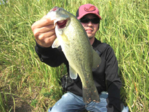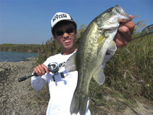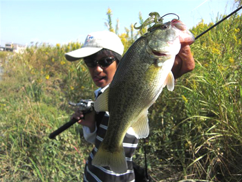 参加者のみなさんはセオリーどおりにターンオーバーの影響の少ない流入河川や本湖の中でも比較的水質が安定しているスポットなどを中心に狙いましたが、流入河川は水位が低いために、バスを見つけてもハイプレッシャーであることは容易に理解できました。そのため本湖でも比較的沖までウイードが続いているエリアや、岸寄りでブレイクの近いエリアなどにポイントは絞られました。