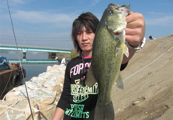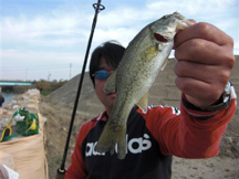 続く2位は、ウッシーちゃん。ウッシーちゃんは朝イチこそ苦戦したものの、10時過ぎに見合い橋付近(碧南市川)でサターンワーム(ウォーターメロン)のダウンショットリグを使用して22.5cmをキャッチ。その後回遊ポイントをシャローのブレイクに絡むストラクチャー付近に絞り込み、わずか15分後、同リグで33cmをキャッチして2位入賞となりました。一時は暫定首位だっただけに、あと一本キャッチできなかったことだけが悔やまれまが、それでも2位は立派です。おめでとうございます!