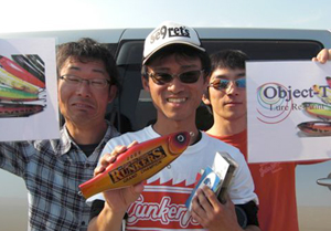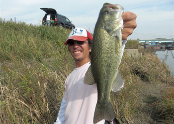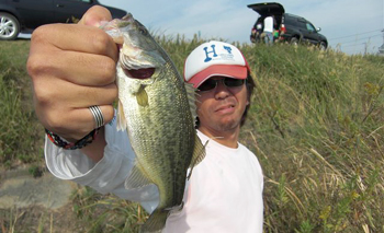 この混戦で勝ち抜いたのは祥君。祥君は7時過ぎに見合橋付近で、ケムケム+アイシャッドを使用して20.5cmをキャッチしたあと長田川へ移動し、8時過ぎにリミットメイカーハイパーストレート(ウォーターメロン)のネコリグで23cmをキャッチ。その後本湖を転々としましたが、バスの反応がなかったため、再び長田川へ移動して優勝の決め手となる19cmをプリシャ(スモーク)のノーシンカーでキャッチしてリミットメイク。他の参加者があと一本が釣れなくて苦戦している間の逆転劇となりました。おめでとうございます!