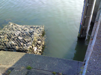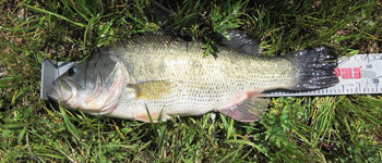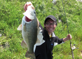 しばらくすると10時を過ぎて水門が開いたので、少しずつ水が動き出しました。そしてここでついにてっしーが沈黙を破りました!てっしーは見合橋の西の安城市側で10時40分、デュエルゾンビクランク(懐かしいですねー)の シャッドカラーで45cmをキャッチ。狙ったポイントは、ブレイク近くにあるゴロタ石。やはりコンタクトポイントでした。魚は一度産卵したかのような体でしたが、まだ卵をもっていそうな感じで、体高のあるグッドサイズのバスでした。てっしー、おめでとう!