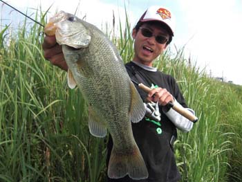 さっそく今大会の話に移りますが、まずは湖の状況などを解説します。朝は肌寒かったものの、徐々に気温は上昇。田植えの影響で水質はマッディなものの、西からの風の影響で、活性は朝から高かったです。あと、本当に少しずつですが水位が下がっていき(油ヶ渕はタイダルレイクである)、この影響による水の動きもバスの活性を上げるのに最適なファクターとなりました。