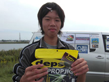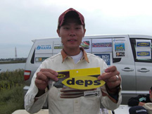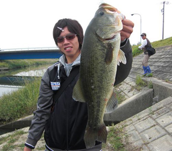 まずは準優勝は、最近絶好調の池ちゃん。今回もOSPハイピッチャーで相変わらずのハードルアー攻めで見事35.5cmをキャッチ。最初に川に入ったそうですが反応が芳しくなかったため新川へ移動してキャッチしたとのこと。新川はあまり水質が良くなかっただけにおそらく流入バスだと思われますが、そのワンチャンスをものにできたのではないかと思います。おめでとうございます!!