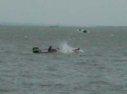 初日の午後はそれはもう大荒れで…バスボも波にささってしまいます!