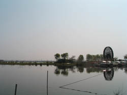 昨日と同じようにジャンボのテキサスをブッシュの中にキャストしていきました。すると3投目で来ました! デカイ!!っていうかデカ過ぎのバス!!! 思いっきりひっこ抜くと少しだけカラダが見えました、楽勝55アップ! 昨日より一回りデカイじゃないの! これなら1本で勝てると思いました。でもここからが問題だったんです。自分からバスまでは距離にして10m、その間超スーパーヘビーカバーという状況の中どうキャッチするか・・・。近くて見ている岸釣りのヒトも心配そう。ああ〜ホント困りました。昨日ならサイズ的に一回り小さかったんで、ひっこ抜くことが出来たんですけど、今回は全くの予定外のサイズ。こんな化け物引っこ抜くことなんて絶対出来ませ〜ん。