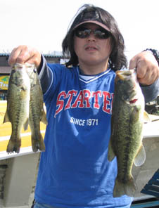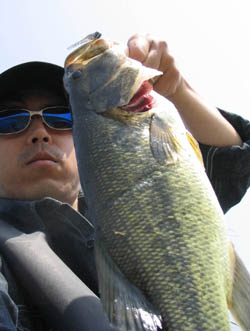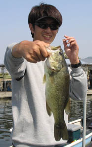 最近の黒鱒はですね、全然知多からは離れちゃいまして、すっかり全国行脚モードになってます。今回の報告は4月17日、18日の伊庭内湖です。ここで18日に数人のちょっとしたトーナメントをやることになりまして、17日はプラというわけです。去年も同じように三河湖で2回やってるんですけど、プラなしぶっつけ本番&初めての湖だったんで、思いっきりホゲってます。であるからして今回はいっちょプラでもやったろかって感じで入ったんです(もちろん今回も初めてのレイクです)。結果から言うとこれはヤバイ! と思うくらいの感触を掴んじゃいました。写真を見てもらえば分かるんですけど、45クラスのバスを3本とアタリ5回といった結果で絶好調でした。4本目からはフックポイントを折ってやってたんですけど、明らかに重〜い手応えでしたので、これは4キロはカタイっていう感触。釣り方はブッシュへのテキサス打ちとサイトです。ブッシュへはヘビーロッドに14ポンドのフロロ、ルアーはジャンボグラブです。もう皆がおそらく打たないような超ヘビーカバーを打つって感じですね。バスのそばに落ちれば必ず捕れるといった感じです。あとサイトはリミットメイカーのハイパーシャッドのジグヘッドを使ってリアクションで釣りました。ただこの日釣ったバスはたまたま大きかったんですけど、全体的に見えバスは30センチ前後が多くて勝負にはならないなと思ったので、明日はテキサスに全てを賭けることにしました。でもこれがねぇ・・・。
