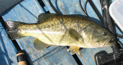 結局散々悩んだあげく、パドルで進入を試みました。ところが! 1mくらい進んだところでバスが暴れ出し水中で走り出しちゃいました。黒鱒も応戦してパドルから手を放してロッドワークでかわそうとしたんですけど、バスは走るわせっかく進んだボートも外へ押しだされるわでラインの送り出しが間に合わず、あえなくラインブレイク。あ〜もう腰抜けました。分かりますぅ?結構リアルに原稿書いたんですけど。あ〜もう悔やむに悔やみきれないって、まさにこのためにある言葉ですよね〜。