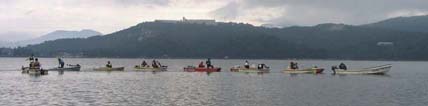 さて、しょっぱなからバスをキャッチして調子にノッた黒鱒だったんですけど、それからは全然バイトなし。それで最後の一時間は明日のこともあるし水中島でやろうかと。そして遠くから見るとまるで蜃気楼のように見えた黒い棒(?)の集まりこそが水中島の大船団だったんですけど、近づくとものすごいボートの数。こりゃ河口湖のロイヤル船団を上回ってるなって感じで、100艇くらいいたかもしれませんね。とにかく異常事態ですわ、これは。