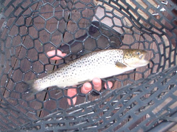 昼食をとったあと、午後になっても同じような感じで釣れたんですけど、雪がちらつく中の釣りだったので、いい加減寒さでガマンできず管理ハウスに逃げ込む始末。 そんな感じで時々暖を取りながら釣りを続けて午後は3本キャッチ。計7本というなかなかの釣果でした。それでも仲間のgucchi君は15本もキャッチするというとんでもない釣果をたたき出し、ここはホントに大安か?と思ってしまう結果となったんです。であるからして、私の釣果は別にたいしたことなかったかも。