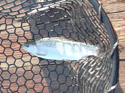 基本的に私の釣り方はスプーンのズル引きだったんですけど、15本釣った彼はスプーンを巻いて止めるみたいな感じで、そのパターンをつかんだあとは、それはもう立て続けのヒットでした。ちなみにこの日のスプーンのカラーはシルバーが特に良かったですよ。