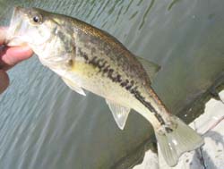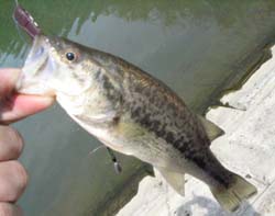 3つ目の池に向かう途中でふと思いついた池に向かいました。今日はどの池でもアングラーだらけだったんですが、ここはな〜んと貸し切り状態。急いで準備してここはと思う場所をランガン。するとこれがいい感じで釣れます。でも金太郎飴みたいなサイズばかりなんですけどね。でも釣れること自体がオッケーっていう感じで楽しくて1時間もこの場所で釣り続けました。小刻みなシェイクをなるべく一点で続けているとコンって感じで「おらよっ」てアワせると釣れるみたいな感じです。最初はセルスティックJr.を使っていたんですけど、途中でバイトがなくなったので、テールスライディングシャッドでもっと小刻みなシェイクをするとまたコンって感じで「おらよっ」みたいな。結局ここで9本ほど金太郎飴サイズをキャッチしました。