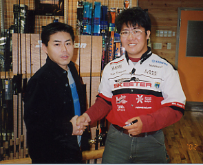 また質問コーナーではロッドに限らず沢山の質問が飛び交いました。私も「アメリカにおけるバスフィッシングの位置づけ」を日本の外来魚問題に絡めて質問してみました。すると孝太郎さんからは、アメリカのブッシュ大統領は、バスフィッシングが大好きで、しばしば家族で出かけることもあるという話をしてくれました。また雑誌などでも紹介されることはあるんですけど、バスフィッシングに関わる規則や設備(トイレやキャンプ場、ライセンス発行など)はしっかり整備されており、アメリカのバスフィッシングに対する考え方が、日本のそれとは正反対であることが伺えます(もちろん日本全てがそうではありません。河口湖などの例もあります)。孝太郎さんからは今の日本の外来魚問題を本当に悲しい出来事だと話していました。