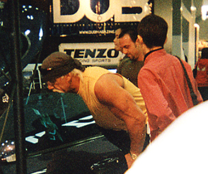 さて話は戻り…この写真はですね、1月10日〜12日に千葉県の幕張メッセで「東京オートサロン」(これはモーターショーのチューニング版のイベントです)が開催されるということで、仕事の関係で10日に行ってきたんですけど(私の本職は出版業です)、その時に偶然ハルク・ホーガンさんに会ったという訳です。ほかにも元SPEEDの上原多香子さんとかもいらっしゃいました。