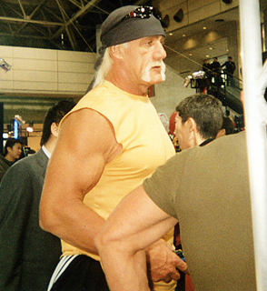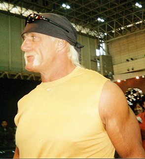 写真に写っているのは、あの“超人”ハルク・ホーガンさんです。今から15〜20年くらい前に日本を席巻したプロレスラーです。「イチバ〜ン!!」と叫ぶ姿は、老若男女誰しもが記憶に残っているのではないでしょうか。そのハルク・ホーガンさん、実は今でも現役で、アメリカを中心にトップレスラーの一人として頑張っているんですよ(日本をメインに活躍していた時はまだ駆け出しの頃だったんです)。