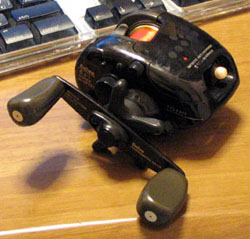 私はもともとロッドやリールを永く使い続けるほうでして、あまり買い換えをすることはありません。あったとしても現行機種に買い換えることはまずありえません。高価で手が出ないんです。ですからローカルトーナメントで頂いた賞品を喜んで使ったり、オークションで探した何世代前の中古を見つけては買い換えるくらいです。私にとってはそれが最新機種になるんですけどね。時には「何? このリール? どこのメーカー?」なんて聞かれたこともあるくらいでした。