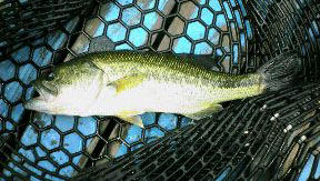 しかも、そのファイト中には35cmクラスの5〜6匹の群れが、釣られたバスにピッタリと付いてきており、まさにフィーディングモード!群れの消えていったあたりに、すかさずツネキチリグを投入し、スローに狙うと、またバイト!28.5cm、約300gのキーパーをキャッチすることができました(群れの中の一番小さい奴だったのかも)。